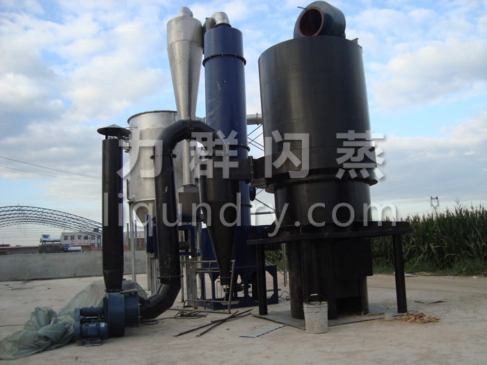 ③、工藝簡(jiǎn)化。與運(yùn)用其它類型的干燥機(jī)相比,用閃蒸干燥機(jī)干燥膏糊狀、泥漿狀、濾餅等物料可以一次干 燥成均勻的粉狀產(chǎn)品,省去了粉碎、篩分等工序。