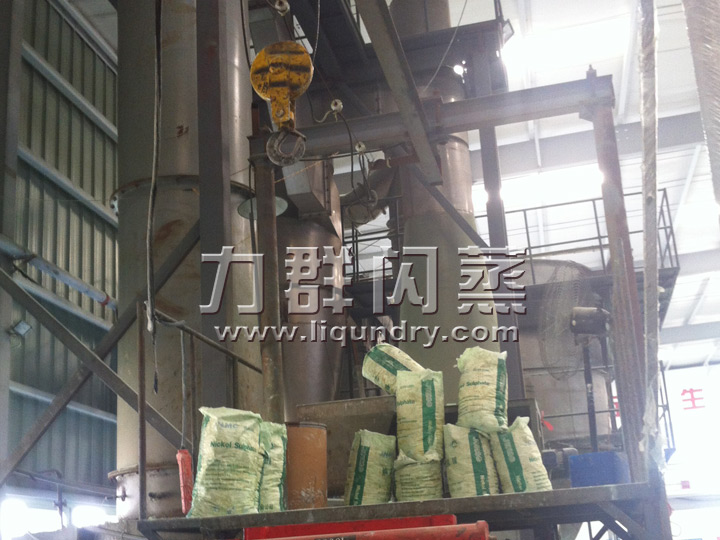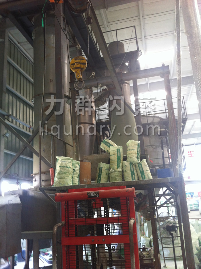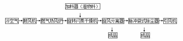 經換熱器加熱后的潔凈空氣被鼓入進風口,以適宜的速度旋入干燥室底部的環隙,然后按切線方向進入干燥室,并呈螺旋狀上升:同時,物料則由可無級調速的加料器定量加入塔內。在干燥塔內,物料與熱空氣進行充分、高效的質熱變換,被干燥的粉狀物料隨同熱風一起輸送至分離器,其中成品收集包裝,而尾氣則進一步經除塵裝置處理后排空。